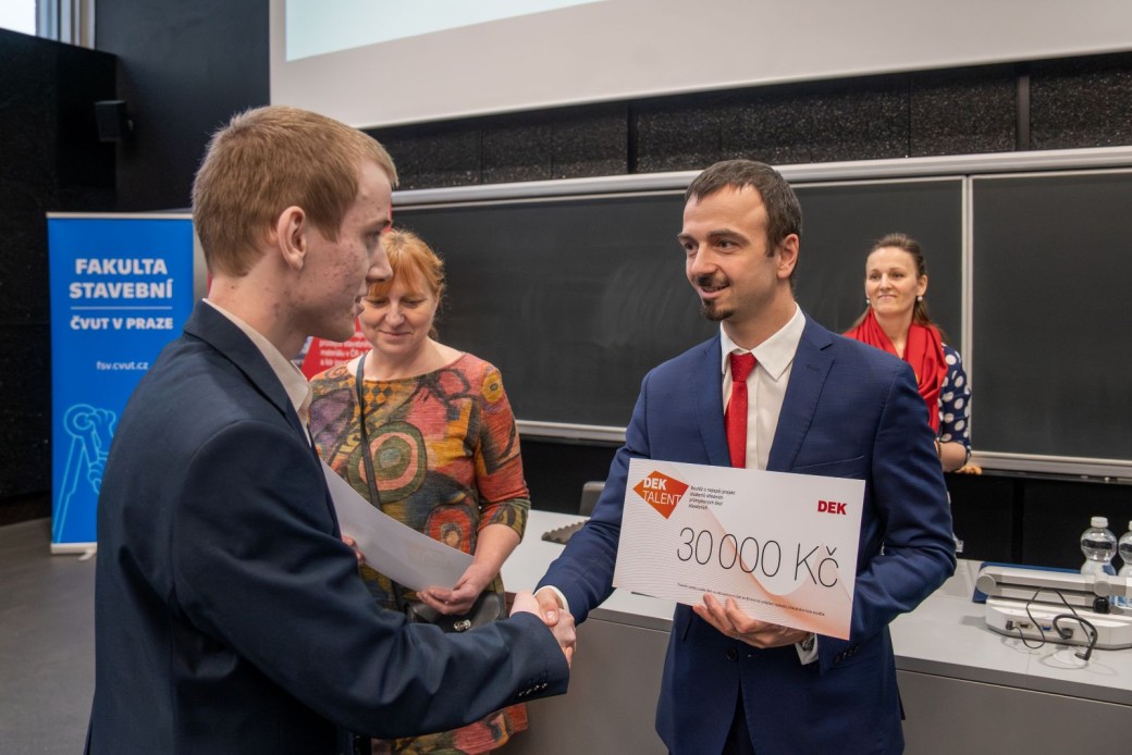 Práve týchto hore uvedených desať víťazných projektov najlepšie naplnili náročné kritéria a vďaka svojej vysokej úrovni si právom zaslúžili ocenenie formou finančnej odmeny od 400 Eur (5. miesto) do 1 200 Eur (1. miesto). Finančnú odmenu vo výške 400 Eur získali aj vedúci ocenených ročníkových projektov. Ako uznanie za veľmi dobre odvedenú prácu naviac každý z víťazov získal pre svoju triedu exkurziu do výrobného závodu skupiny DEK. Ide o jedinečnú šancu zažiť modernú stavebnú výrobu v praxi a získať náskok v odbornom rozhľade.