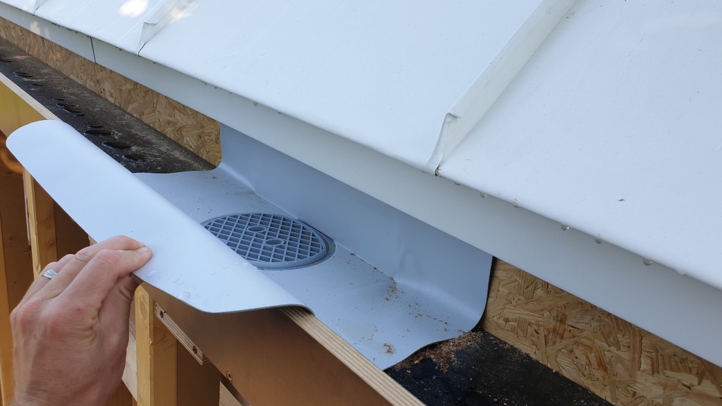 Dolný okraj PIR dosiek bol zrezaný tak, aby vytvoril priestor pre konštrukciu žľabu.