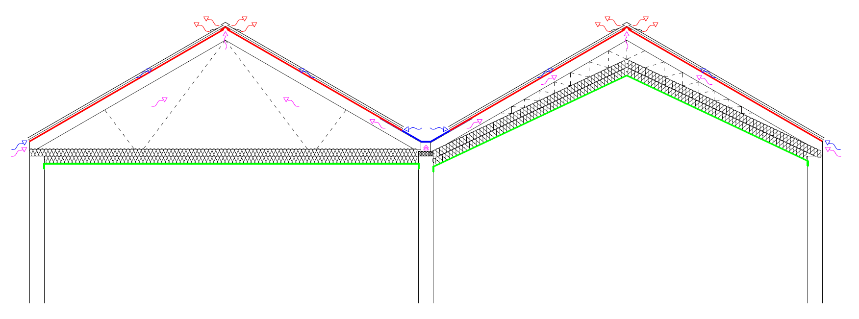 Prinicp navrhovaných opatrení odvetrania trojplášťových striech riešeného objektu je schématicky znázornený na Obr. 10.