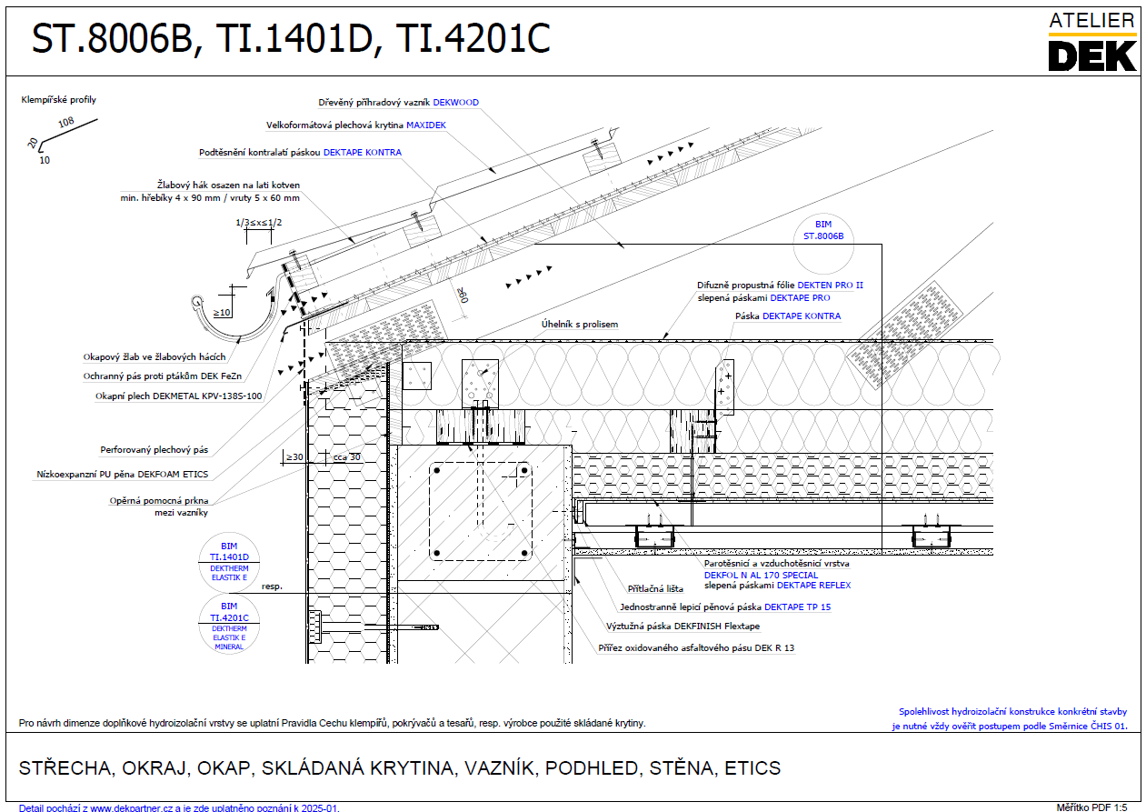 [2] Pokrývačské pravidlá Cechu strechárov Slovenska pre návrh a realizácie striech budov (Vydanie druhé, 06/2025) https://www.cechstrecharov.sk/pokryvacske-pravidla-cechu-strecharov-slovenska-pre-navrh-a-realizacie-striech-budov/